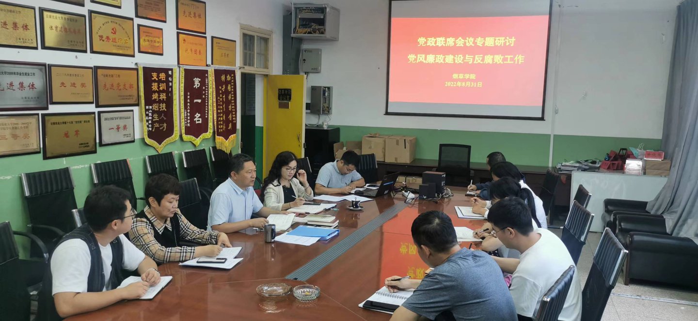 2022年8月31日上午10:00,开运体育 召开了党政联席会议,专题研讨党风廉政建设与反腐败工作,院党委书记李作森主持会议,开运 党政领导班子成员、各室所负责人等10人参加了会议。