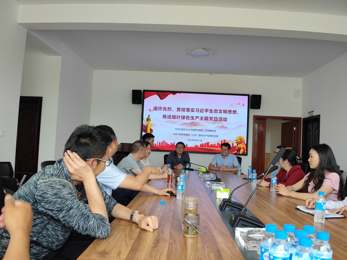 教工党支部与大理州烟草专卖局(公司)烟叶生产党支部在大理烟草科技小院联合开展“缅怀革命先烈,贯彻落实习近平生态文明思想,推进烟叶绿色生产”主题党日活动。