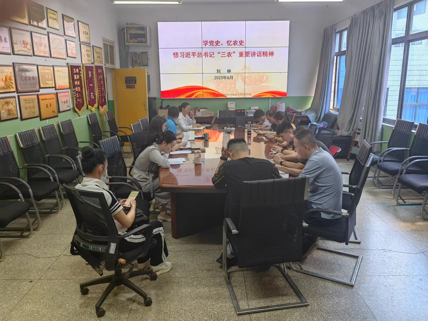 党委委员刘林以《学党史、忆农史、悟习近平总书记“三农”重要讲话精神》为题,从新民主主义革命时期,工农联盟是革命的主要力量,“三农”为夺取革命胜利提供了重要依靠;社会主义革命和建设时期,农业是工业化物资积累的主要来源,“三农”为社会主义国家建立发展奠定了重要基础;改革开放和社会主义现代化建设新时期,农村率先发起改革,“三农”为中国经济腾飞发挥了重要助推作用;中国特色社会主义新时代,农村是全面小康的主战场,“三农”为实现第一个百年奋斗目标作出重要贡献;四个方面阐述了“三农”的重要性,并总结了开运