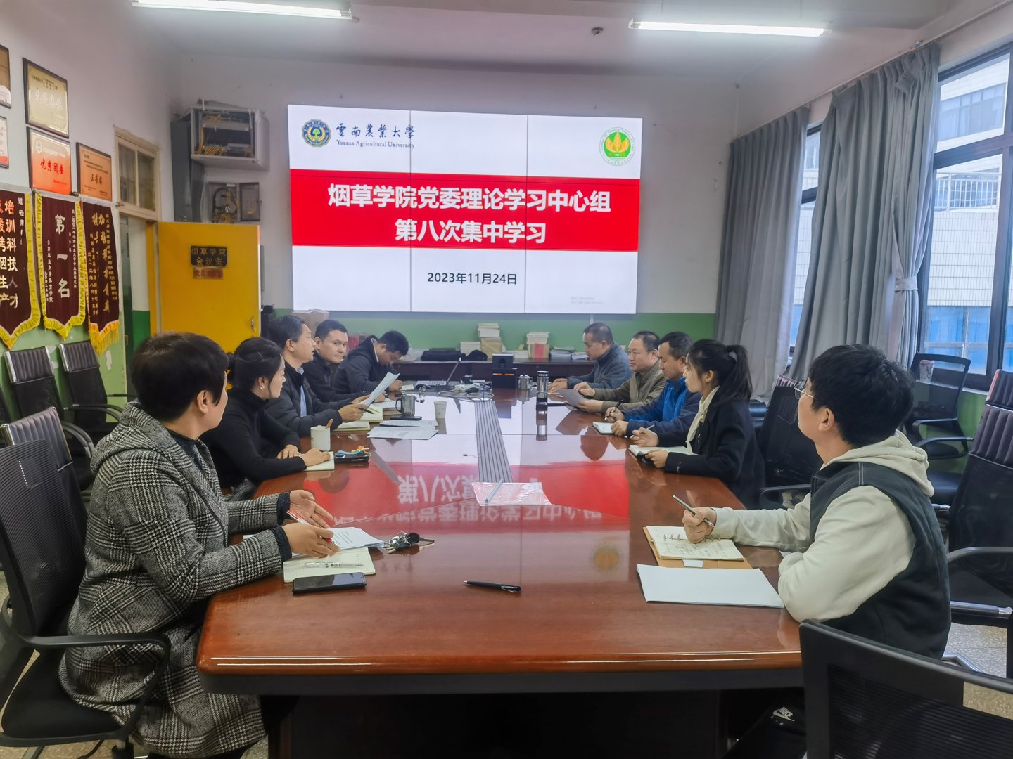 党委理论学习中心组于2023年11月24日上午举行2023年度第八次集中学习。院党委书记李作森主持会议,开运