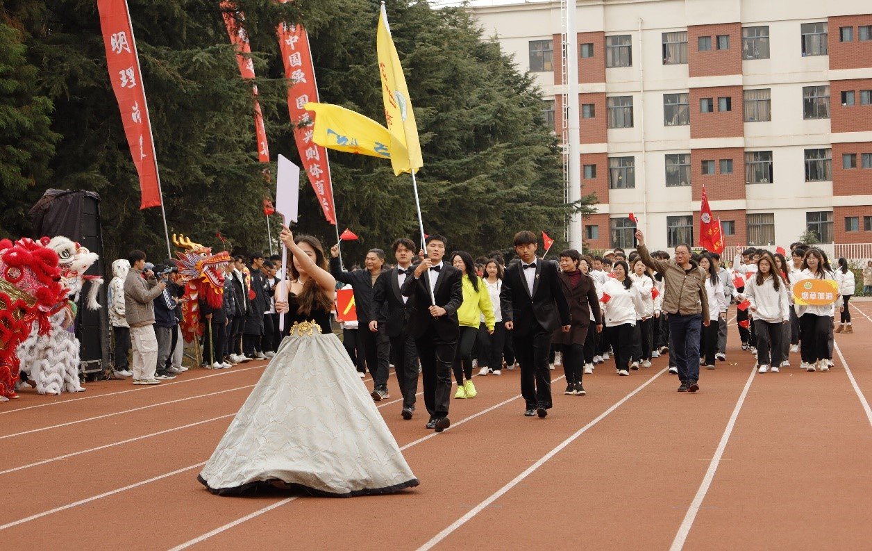 老师的带领下,以饱满的精神姿态,拼搏的活力与追求卓越的信心,迈着整齐的步伐走过主席台。开幕式上,同学们带来了活力四射的啦啦操表演,掀起现场观众一阵阵欢呼声,点燃了云农学子的运动激情。