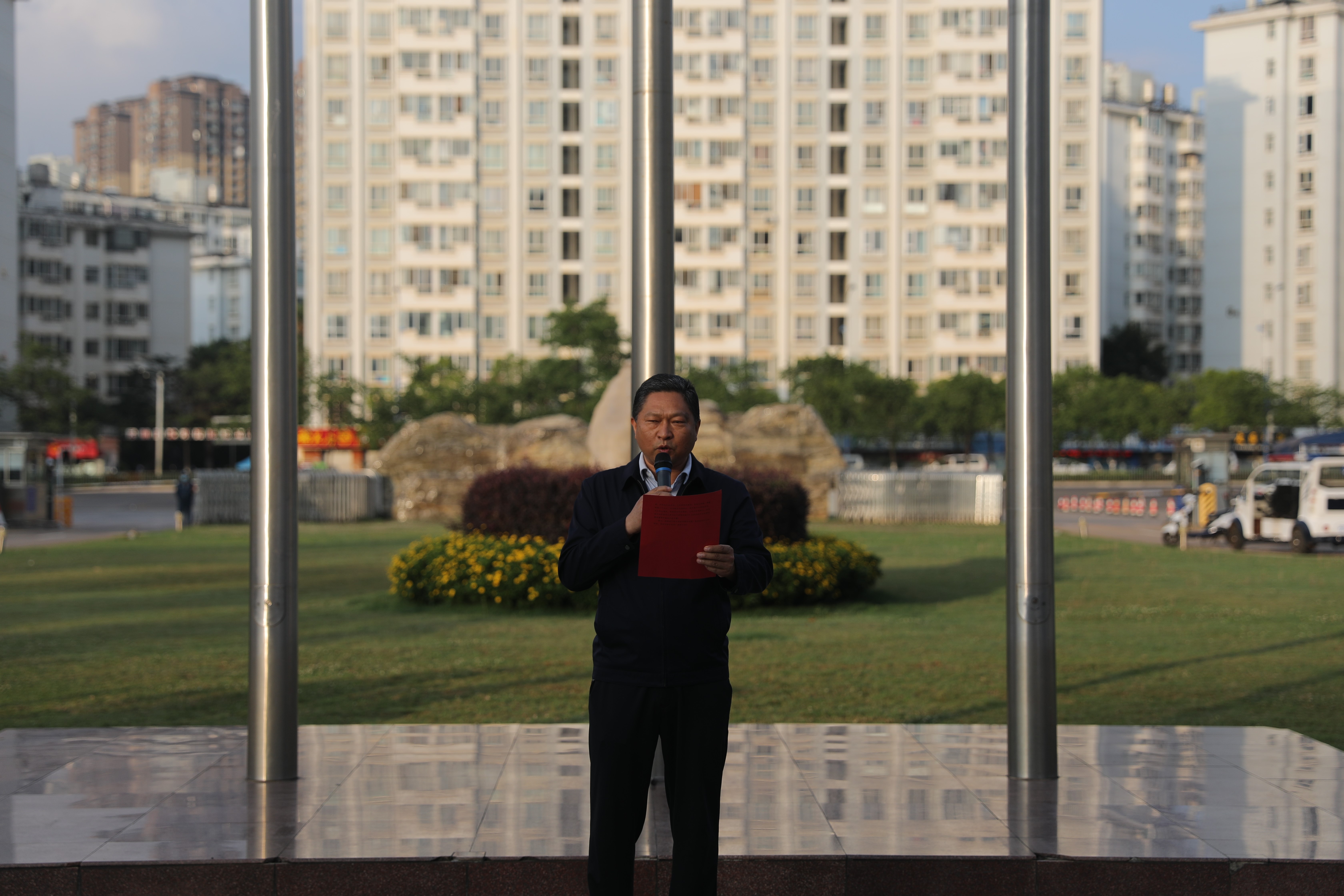 党政领导班子、全体师生参加了升旗活动。