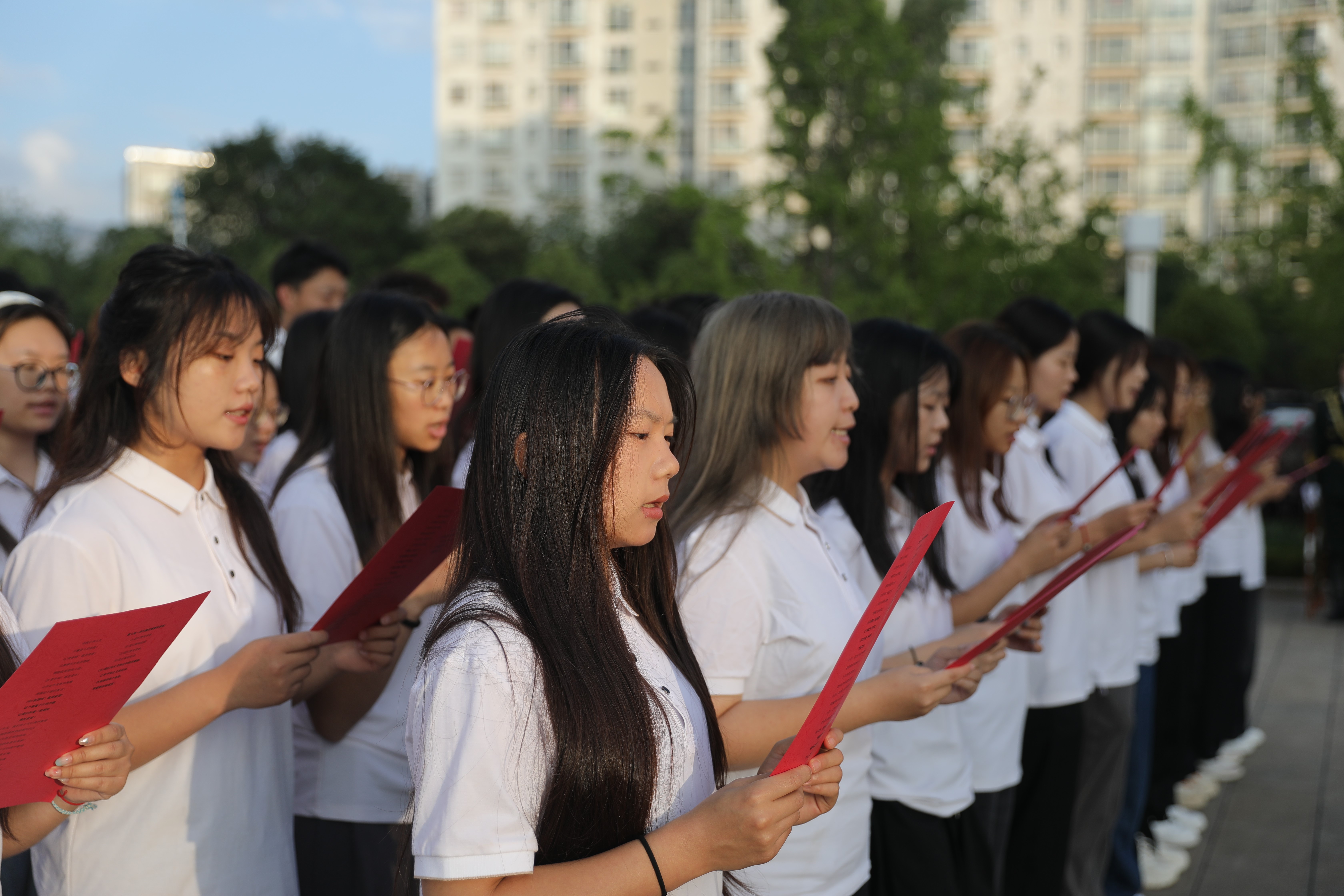 最后,学生代表集体朗诵《祖国,我用青春的名义为你歌唱》,每一句诗词都蕴含着同学们对未来的期许,对祖国的热爱,激励着大家踔厉奋发、不断前行。在激昂的朗诵声中,升旗仪式圆满结束。