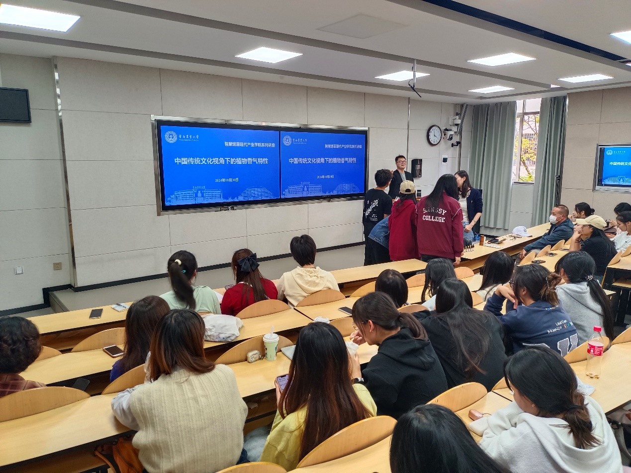 ,并作中国传统文化视角下的植物香气特性的讲座。香料香精技术与工程专业师生共计100余人参加。