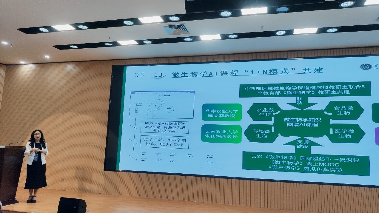 2025年6月6-8日,教育部生物类虚拟教研室学科协作组2025年度工作会议暨《高校生物学教学研究》工作研讨会在厦门大学隆重召开,我校刘雅婷教授作为教育部“典型虚拟教研室”负责人受邀做大会主题报告《跨域协同·数智赋能·产教融合:中西部微生物学课程群虚拟教研室创新实践与区域辐射》。中西部区域微生物学课程群虚拟教研室是由云南农业大学牵头,整合全国81家单位,涵盖农、工、医、师、综合类微生物学课程资源和师资力量创建的跨校、跨区域教学研讨虚拟平台,2022年被认定为教育部虚拟教研室。刘雅婷教授从跨域协同、数智赋能、产教融合三个方面,系统介绍了虚拟教研室在数智教学、数智教研和智慧赋能人才培养方面的创新举措,包括创建了云南省首门生物类AI课程《微生物学》,开发了国内首个农科类AI大模型虚拟助教,以及结合区域产业需求,运用AI与大数据技术形成智慧烟草现代产业开运